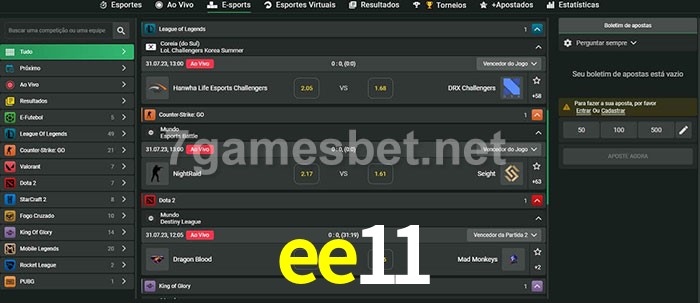 O ee11 oferece uma grande seleção de opções de apostas em e-sports com probabilidades competitivas